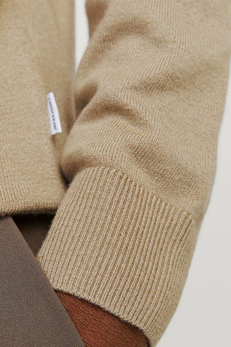 - Beżowy sweter z długim rękawem w fasonie knit fit.