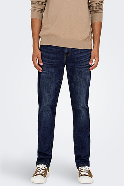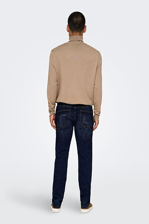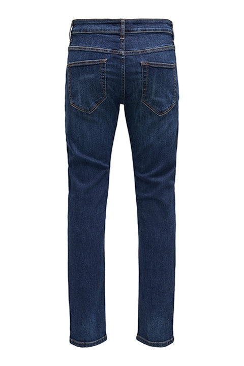 - Ciemnoniebieskie jeansy z zapięciem na zamek w kroju slim fit