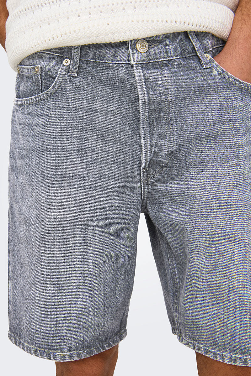 Edge Straight Fit Denim Shorts Medium Grey Denim