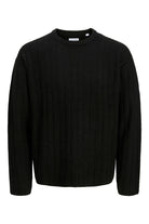 - Płasko dziany sweter z okrągłym dekoltem i długimi rękawami