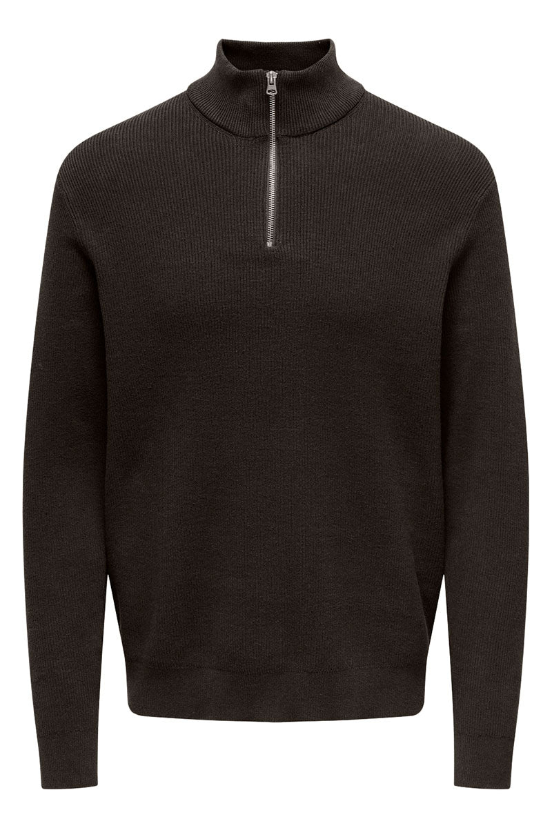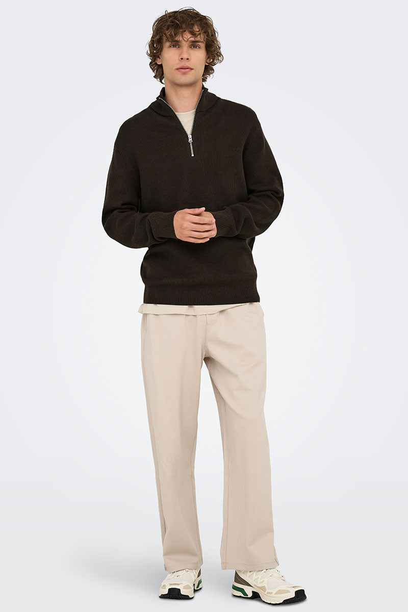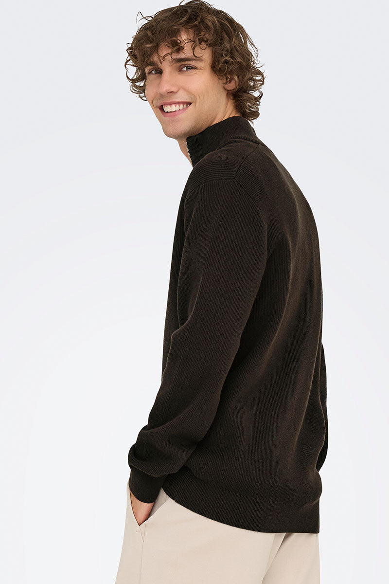 - Sweter z dzianiny z wysokim kołnierzem i półzamkiem
