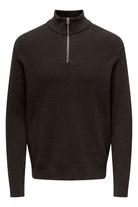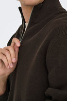 • Sweter z dzianiny z wysokim kołnierzem i półzamkiem