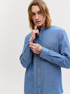 Summer Shirt Linen Blend Band LS Navy Blazer