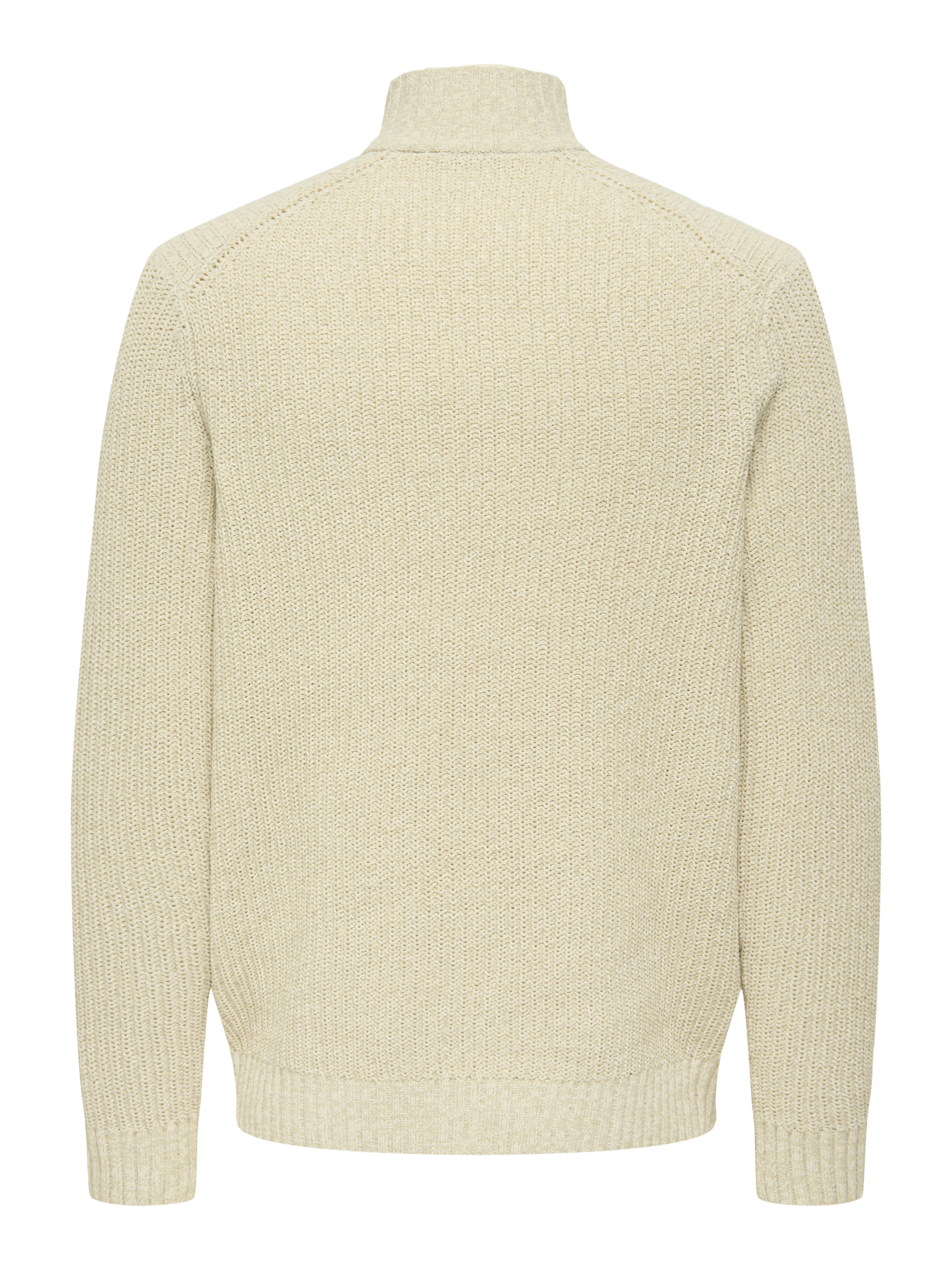 - Gruby sweter z wysokim kołnierzem i suwakiem do połowy długości