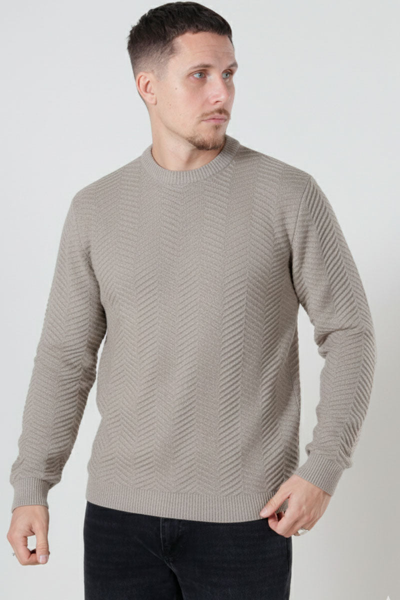 - Beżowy sweter dziany z długim rękawem o regularnym kroju