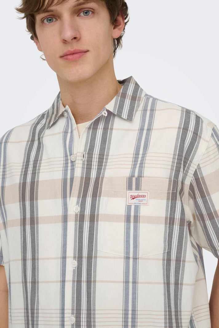 Koszula Onsebert to wygodna propozycja o swobodnym kroju, doskonała na wiosnę. Charakteryzuje się krótkimi rękawami i kołnierzem typu resort, a zapięcie na guziki ułatwia codzienne użytkowanie. Lekki, naturalny materiał zapewnia komfort noszenia w cieplejsze dni. Klasyczny design sprawia, że koszula świetnie komponuje się zarówno z jeansami, jak i eleganckimi spodniami, dzięki czemu nadaje się na wiele okazji.
