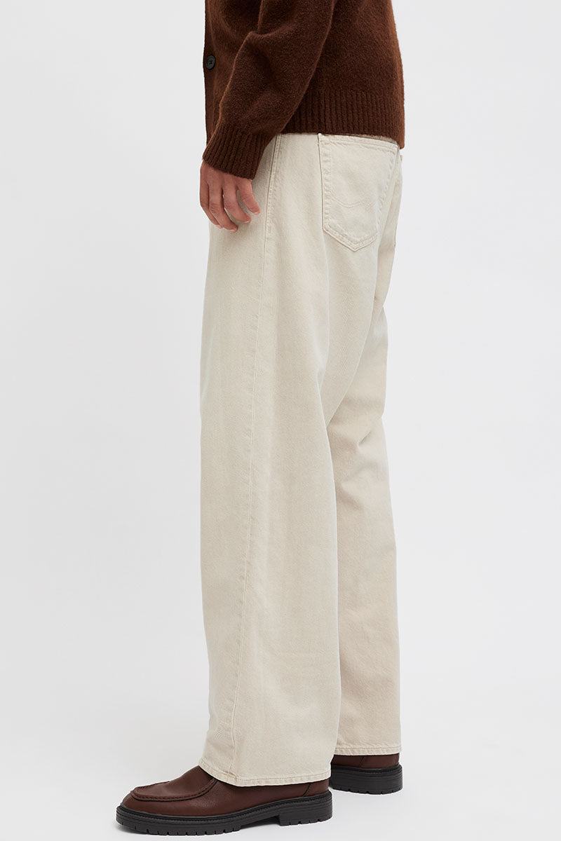 - Posiadają zapięcie na guzik, wysoki stan i 5 kieszeni
