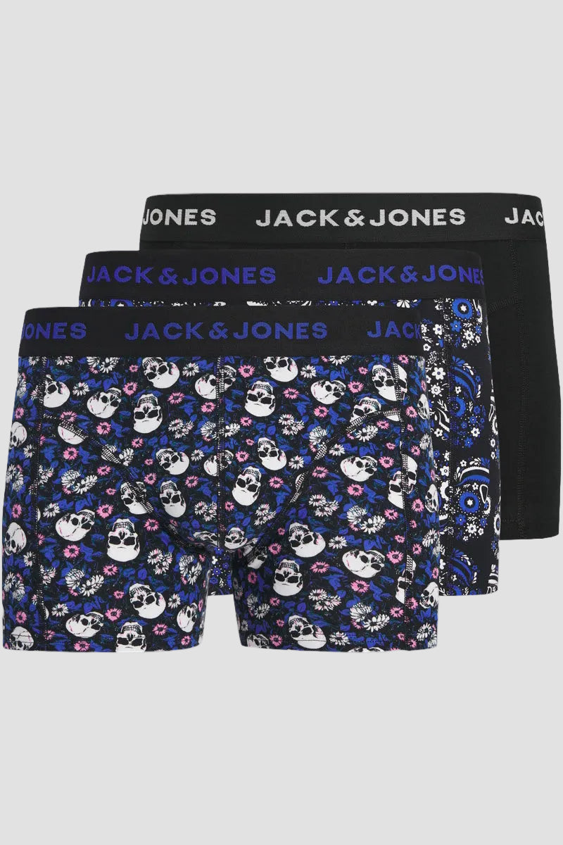 Flower Skull Trunks 3 Pack Black