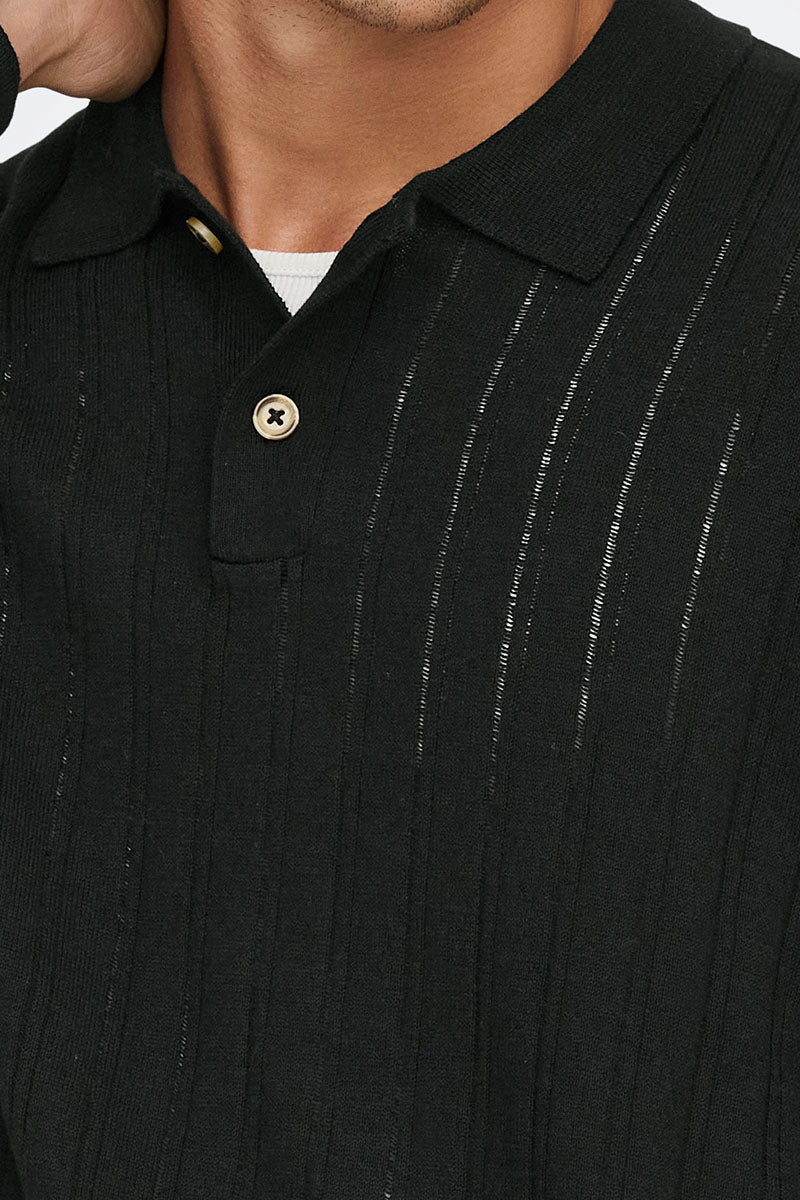 Kent Regular Fit Polo Knit LS Black