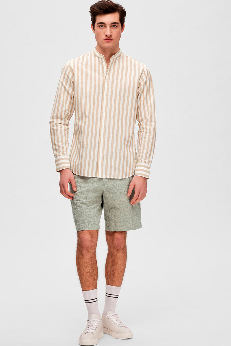 SLHSLIMNEW-LINEN SHIRT LS BAND W Kelp Stripes