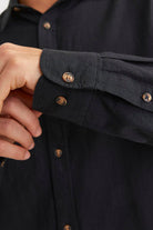 - Koszula lniana z długim rękawem i klasycznym kołnierzykiem.