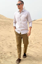 - Koszula lniana z długim rękawem i klasycznym kołnierzykiem.