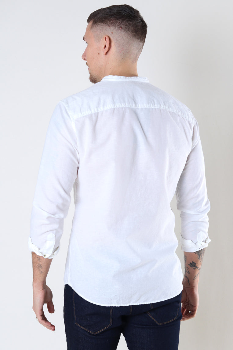 - Koszula lniana z długim rękawem i kołnierzykiem typu mandarynka.