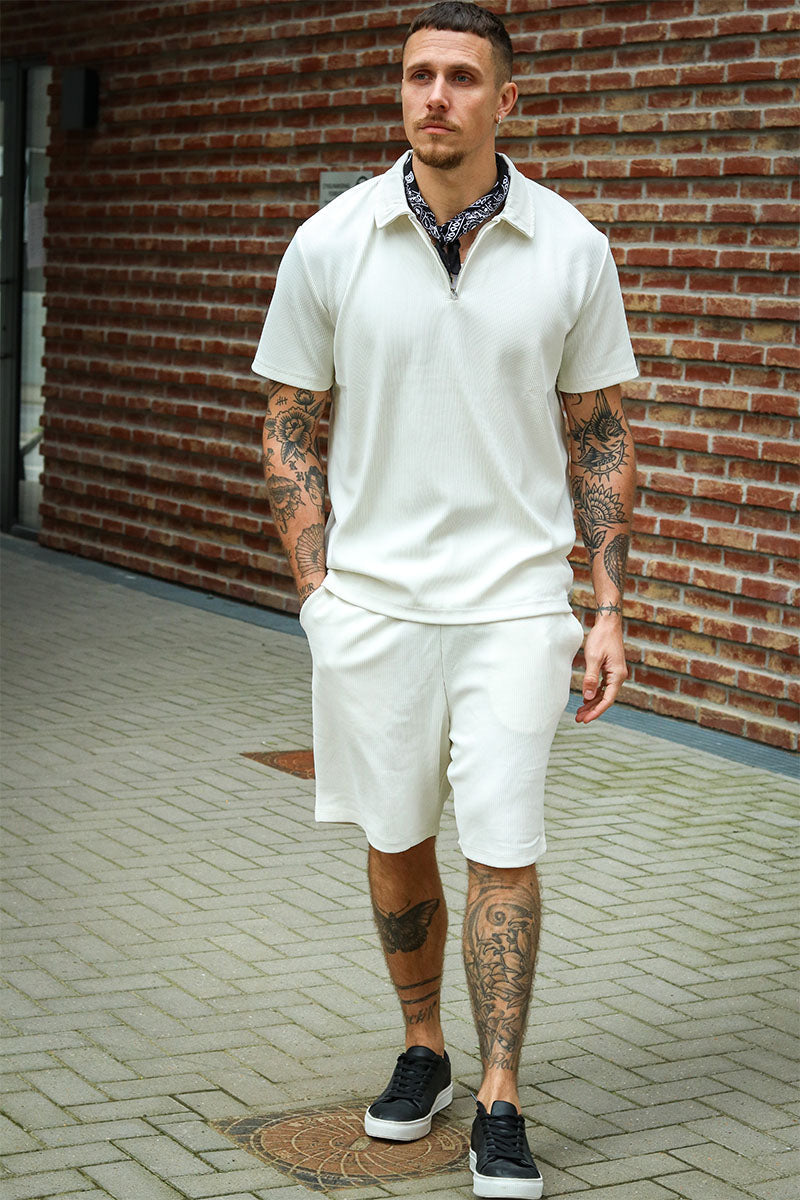 Relax Plisse Half Zip SS Polo Egret