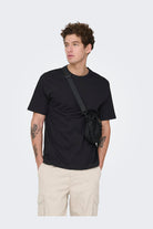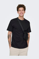 Koszulka o luźnym kroju z krótkim rękawem i okrągłym dekoltem, wykonana z miękkiej i elastycznej dzianiny jersey, która zapewnia maksymalny komfort noszenia. Ten klasyczny i ponadczasowy model doskonale sprawdzi się na co dzień oraz podczas okazji towarzyskich. Czarny kolor dodaje uniwersalności i łatwości w stylizacji.