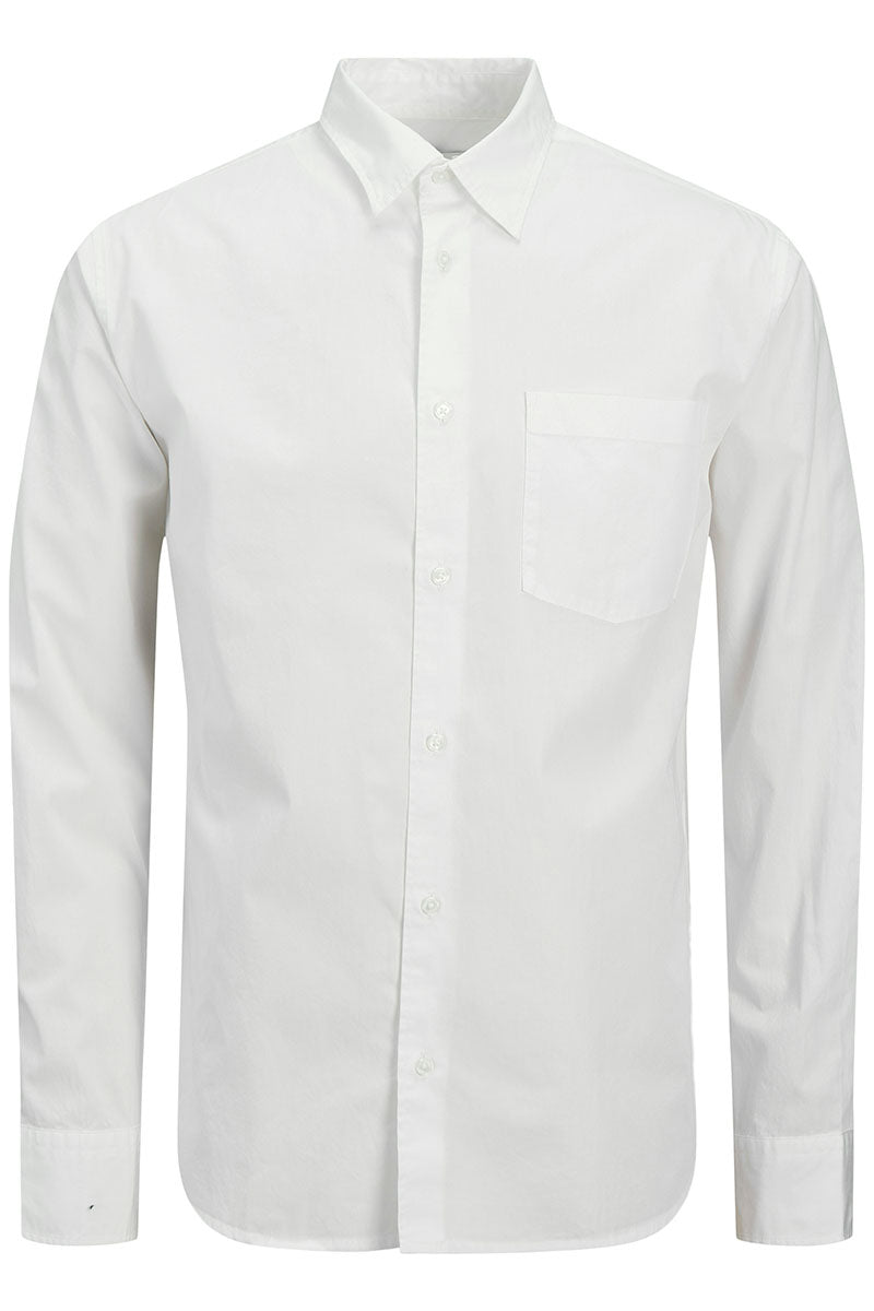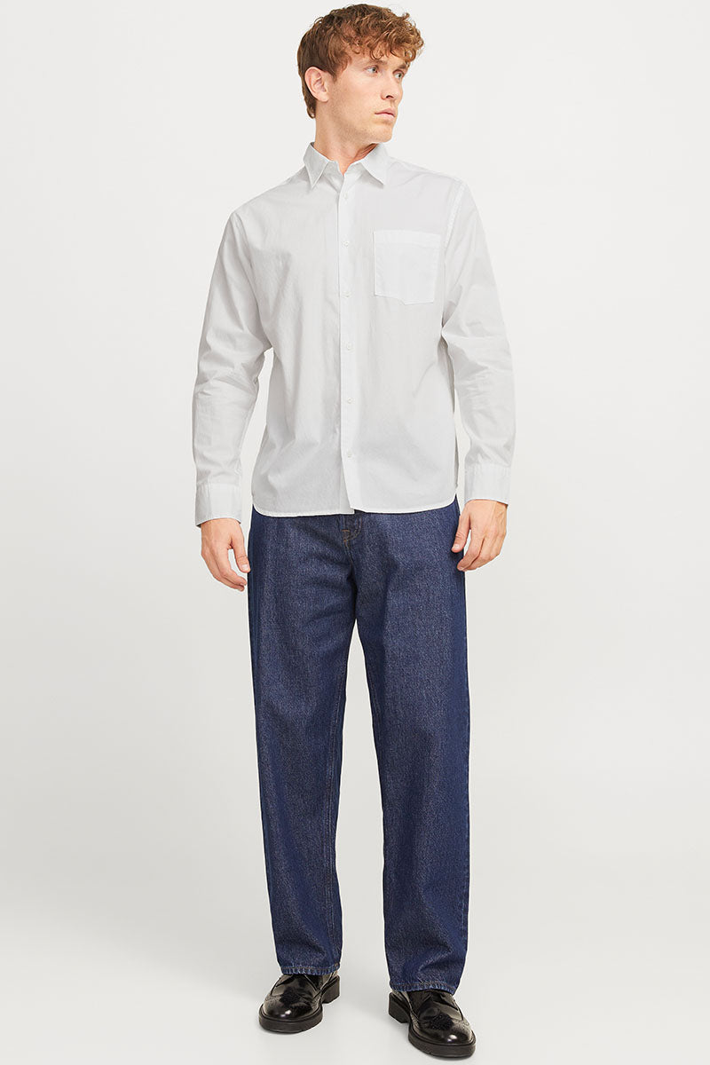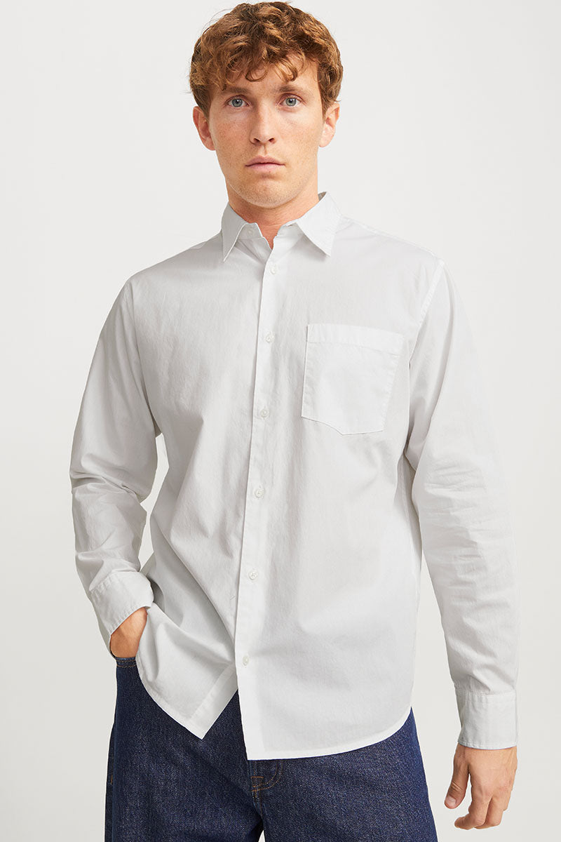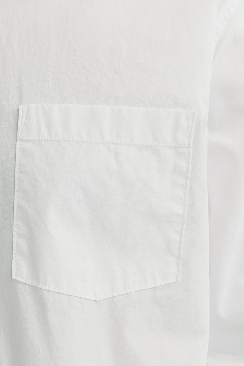 - Posiada klasyczne zapięcie na guziki, kołnierzyk i kieszeń na piersi