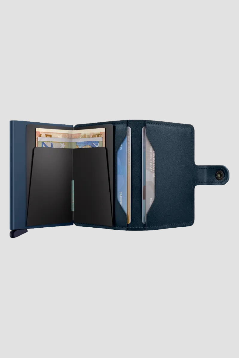 Miniwallet to praktyczny i kompaktowy portfel, idealny dla osób ceniących porządek i wygodę. Wykonany jest ze skóry w niebieskim kolorze, co nadaje mu elegancki i ponadczasowy wygląd. Doskonale sprawdzi się na co dzień, mieszcząc niezbędne karty i drobne przedmioty w schludnej formie.