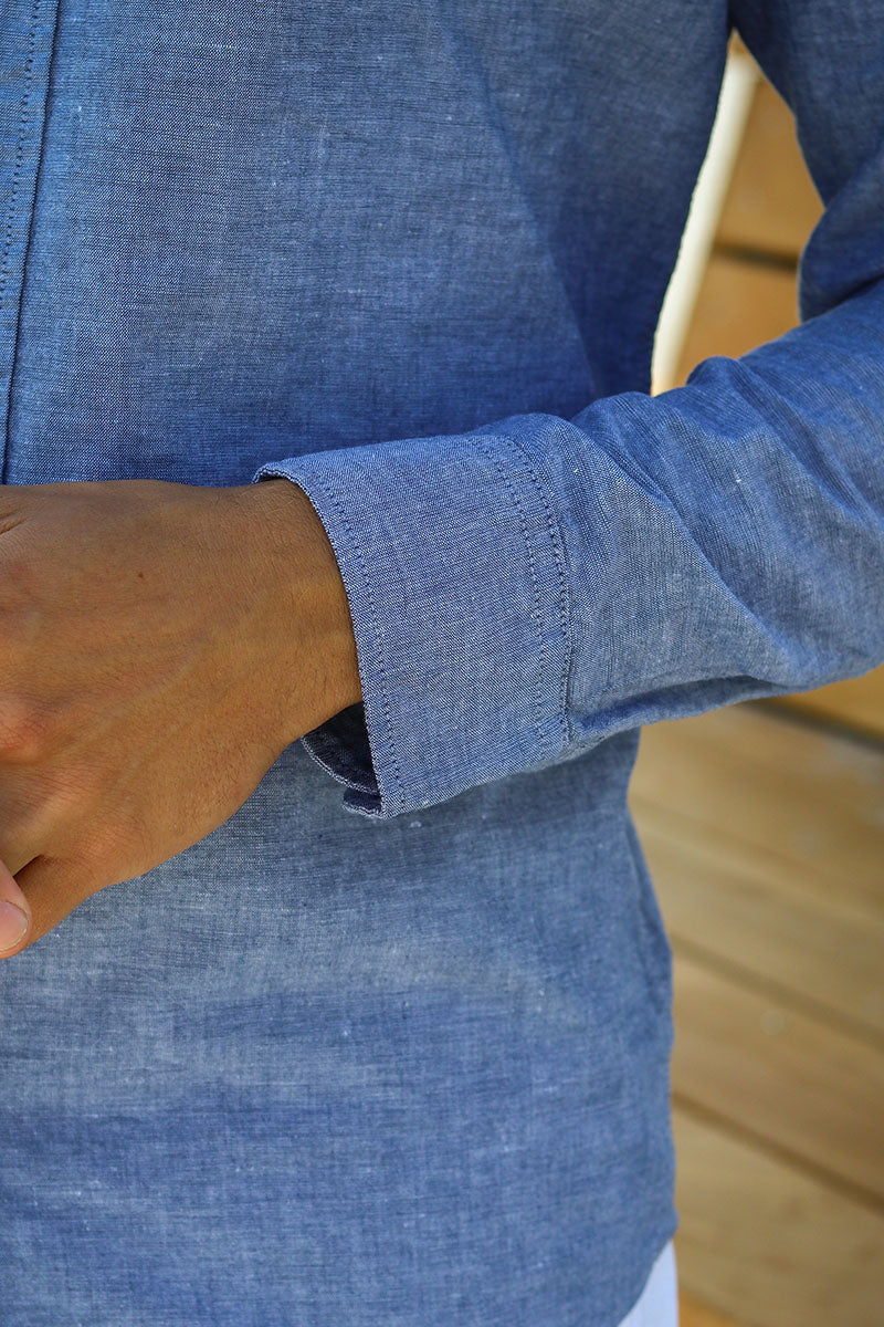 - Koszula lniana z długim rękawem i klasycznym kołnierzykiem.