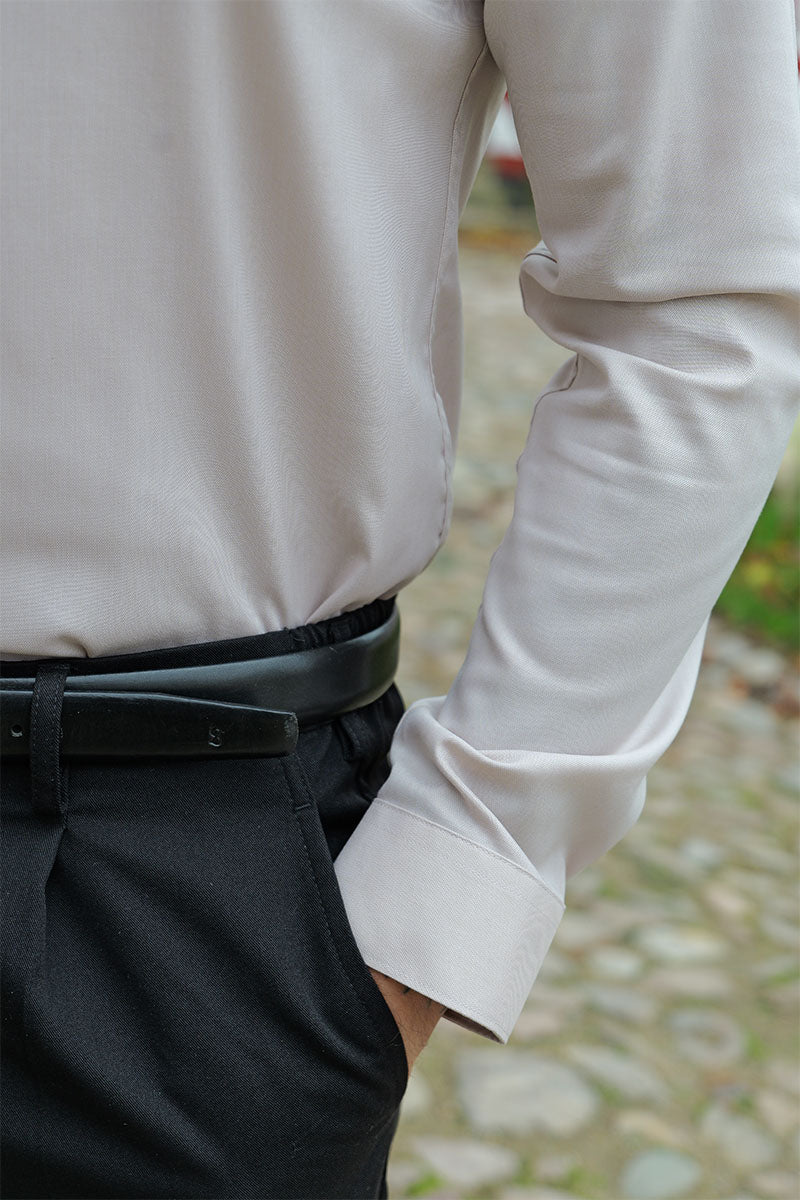 - Beżowa koszula z długim rękawem w fasonie slim fit