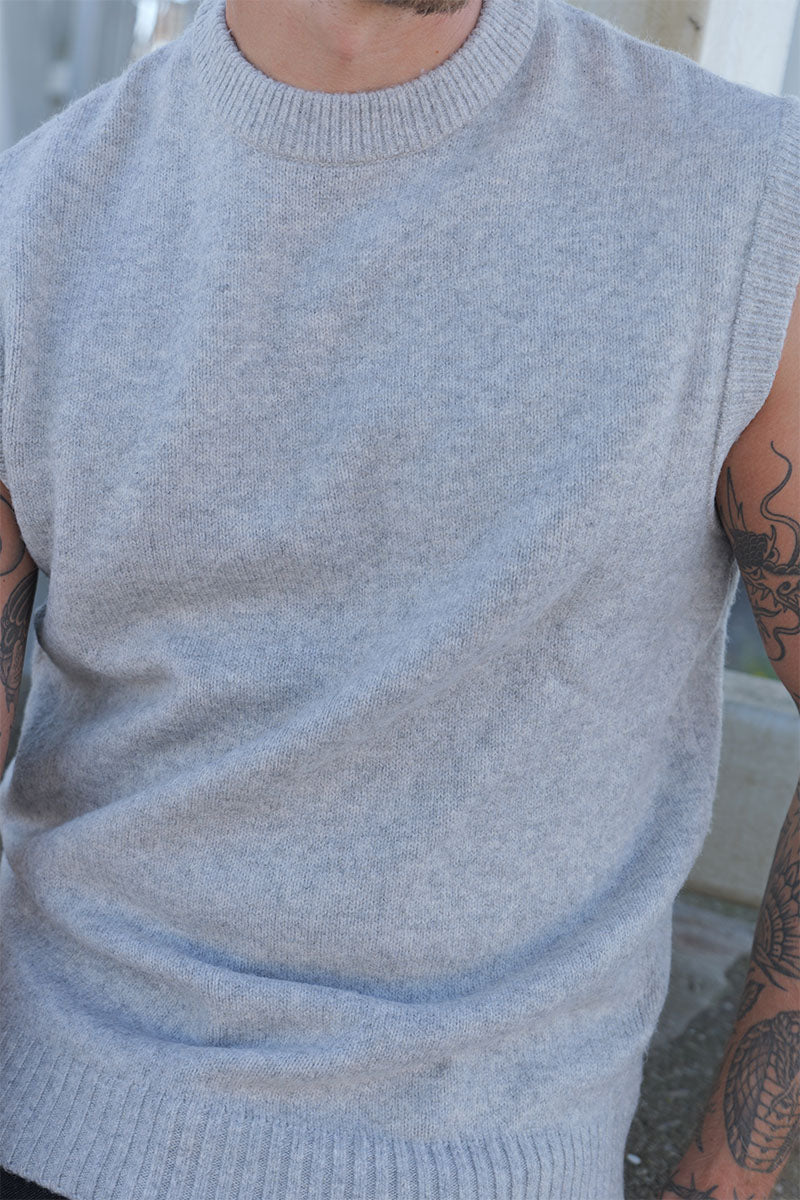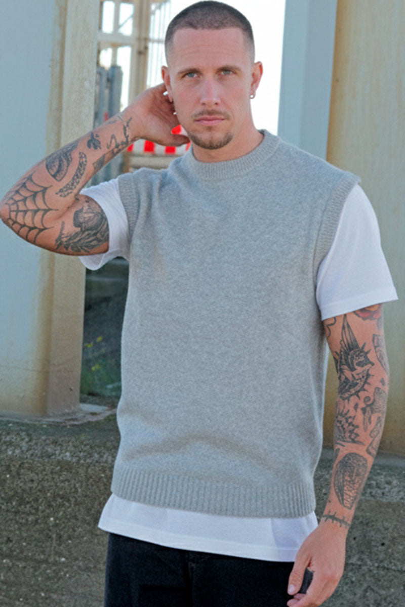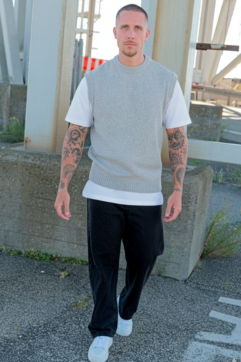 • Jasnoszara dziana kamizelka w fasonie relaxed fit