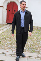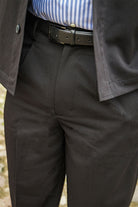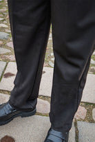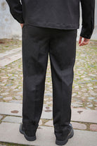 Spodnie tailor loose to ponadczasowy model chinosów o luźnym kroju, który gwarantuje swobodę ruchów i wygodę noszenia na co dzień. Wykonane z wysokiej jakości tkaniny tworzonej z przędz o różnych włóknach, łączą styl z funkcjonalnością. Czarne spodnie posiadają praktyczne przeszycia oraz szlufki na pasek, co pozwala na indywidualne dopasowanie. Idealne na chłodniejsze dni jesieni.