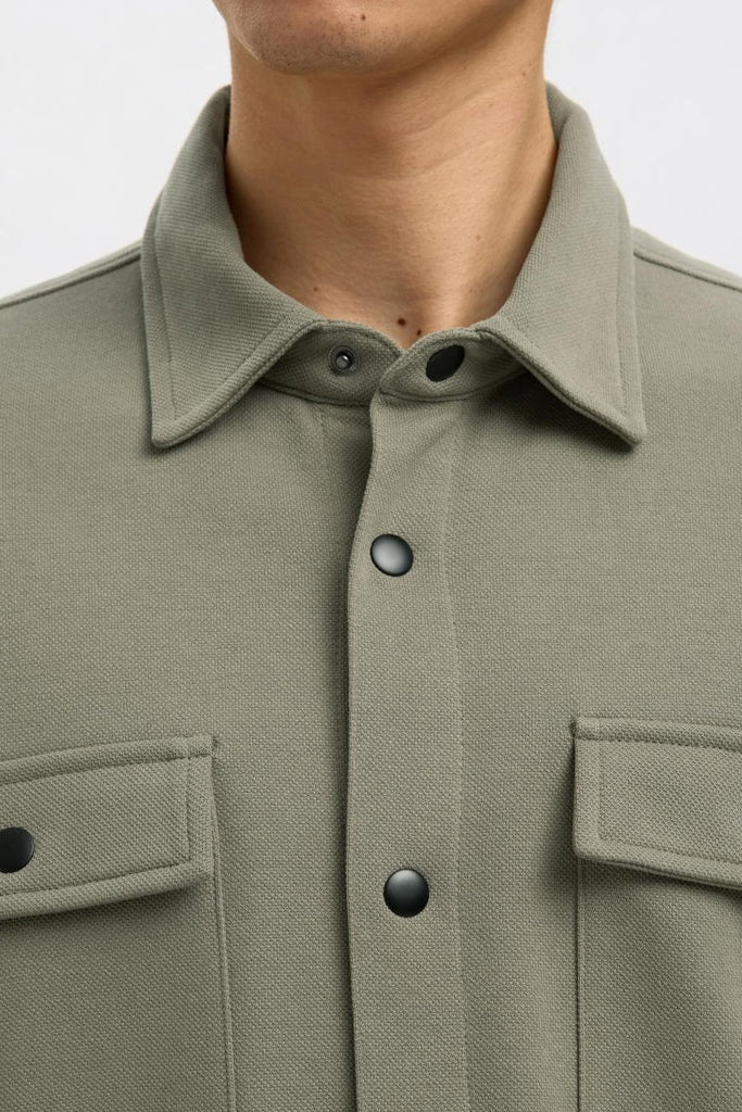 Ta bluza dresowa zapewnia wygodę na co dzień dzięki regularnemu krojowi i klasycznemu kołnierzykowi koszulowemu. Długie rękawy oraz praktyczne kieszenie na piersi dodają jej funkcjonalności. Wykonana jest z połączenia organicznej bawełny oraz przetworzonego poliestru, co podkreśla jej ekologiczny charakter.