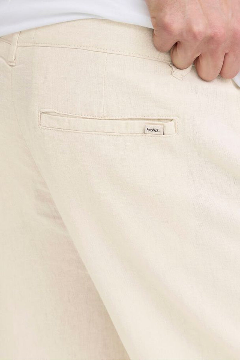 Spodnie o zwężanym kroju z zaszewkami wykonane z wysokiej jakości lnu, który doskonale łączy się z wiskozą, zapewniając wygodę i przewiewność. Model w naturalnym odcieniu płatków owsianych (Oatmeal) charakteryzuje się uniwersalnym i ponadczasowym stylem, idealnym na sezon NOOS dla mężczyzn. Produkowane w Bangladeszu, reprezentują klasę i prostotę w codziennej garderobie.