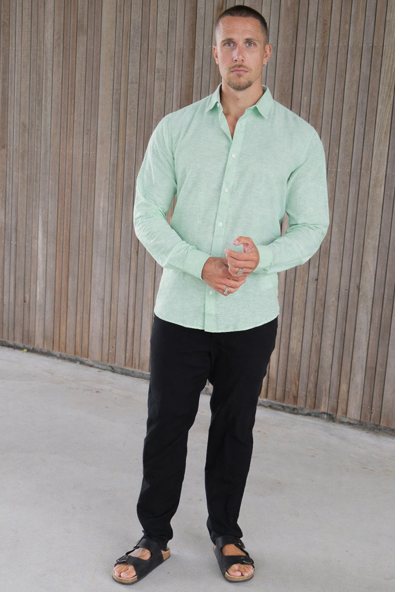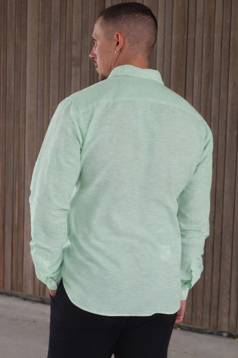 Caiden Life LS Solid Linen Blend Shirt Quiet Green