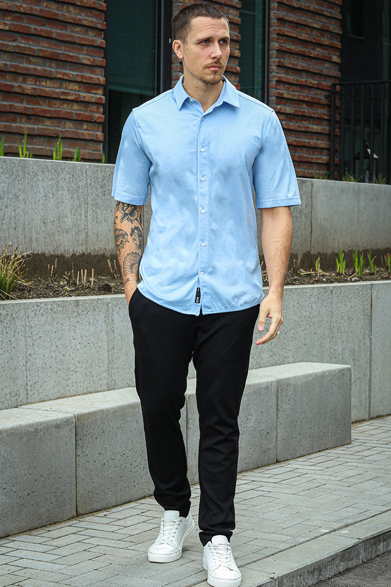 Comfort Shirt z krótkim rękawem w kolorze Cashmere Blue to idealna koszula do letniej garderoby. Kolor jest świeży i jasny, co nadaje jej zwiewny wyraz, który idealnie pasuje na gorące letnie dni.