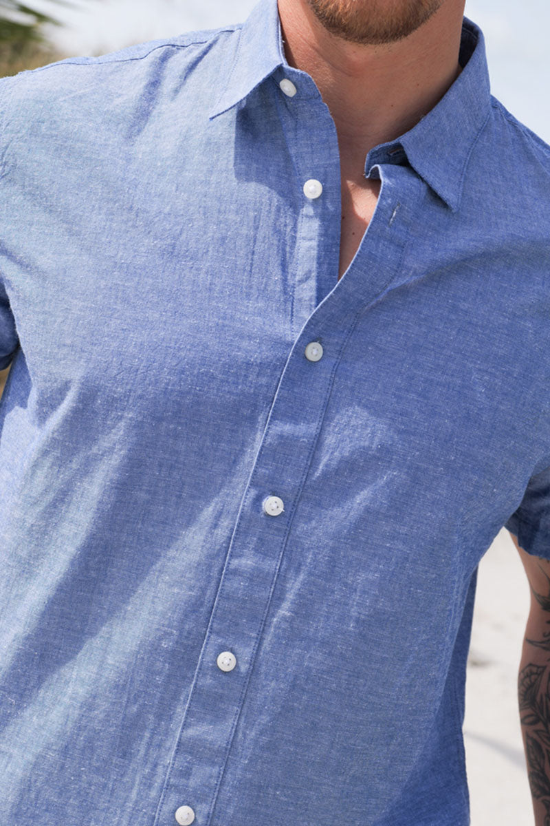 Regular Sun Linen Shirt SS Medium Blue Denim