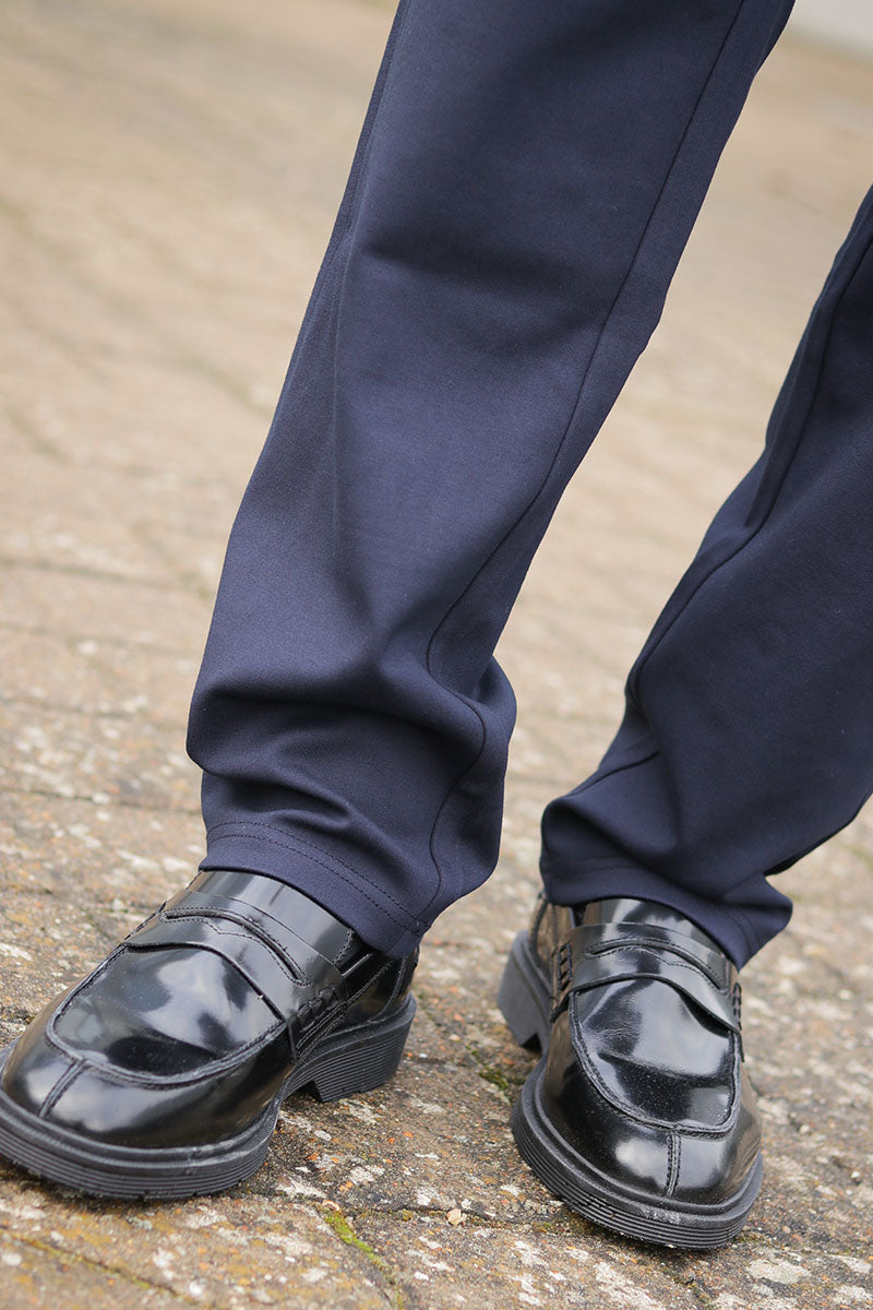 - Gładkie spodnie o regularnym kroju
