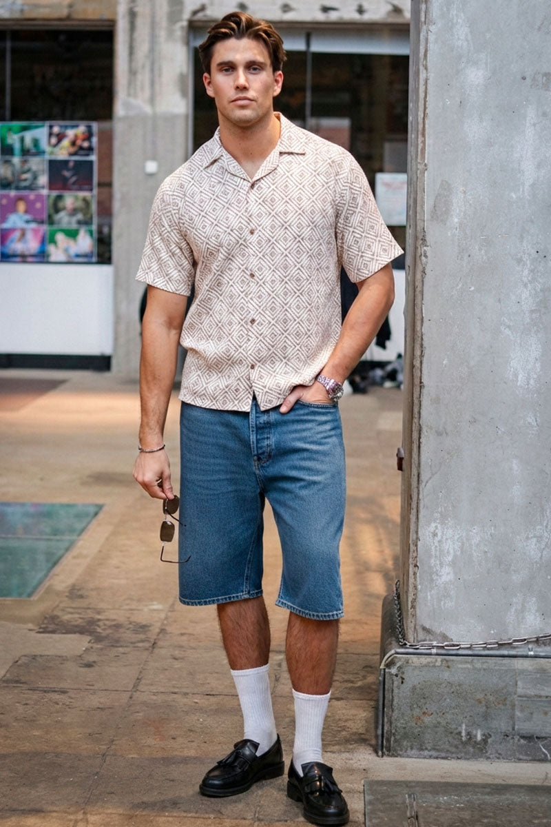 Vincent Print Resort SS Shirt Oatmeal