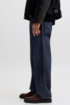 Spodnie dżinsowe o luźnym kroju typu baggy, które łączą wygodę z modnym stylem. Wyposażone w wysoki stan, guziki zamiast zamka oraz praktyczne kieszenie z przodu, z tyłu i na monety. Wykonane w 100% z bawełny, co zapewnia miękkość i przewiewność, idealne na codzienne, swobodne noszenie. Kolor w odcieniu niebieskiego denimu z efektem płukania dodaje im klasycznego charakteru.