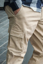 Te spodnie cargo w stylu tapered zapewniają wygodę i praktyczność na co dzień. Uszyte są z miękkiego i gładkiego materiału typu twill, który wyróżnia się charakterystycznym wzorem tkania. Model posiada elastyczne mankiety nogawek oraz tradycyjne szlufki na pasek, co pozwala na indywidualne dopasowanie. Zapięcie na zamek błyskawiczny i praktyczne kieszenie cargo podkreślają casualowy charakter spodni, idealnych na jesień.