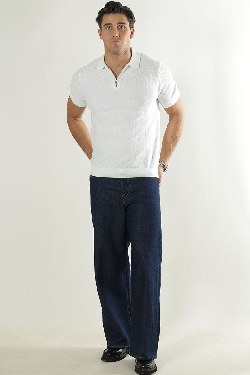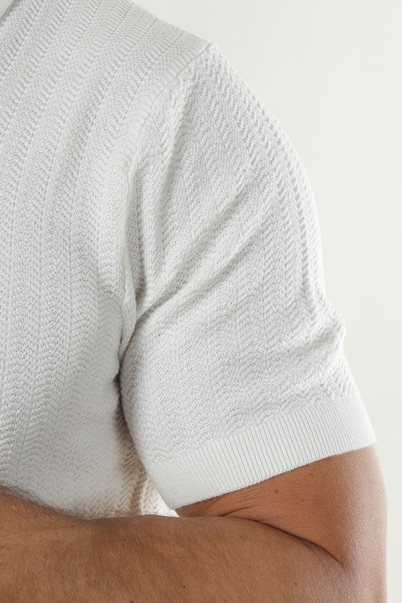 Cran SS Structure Half Zip Knit Polo Egret
