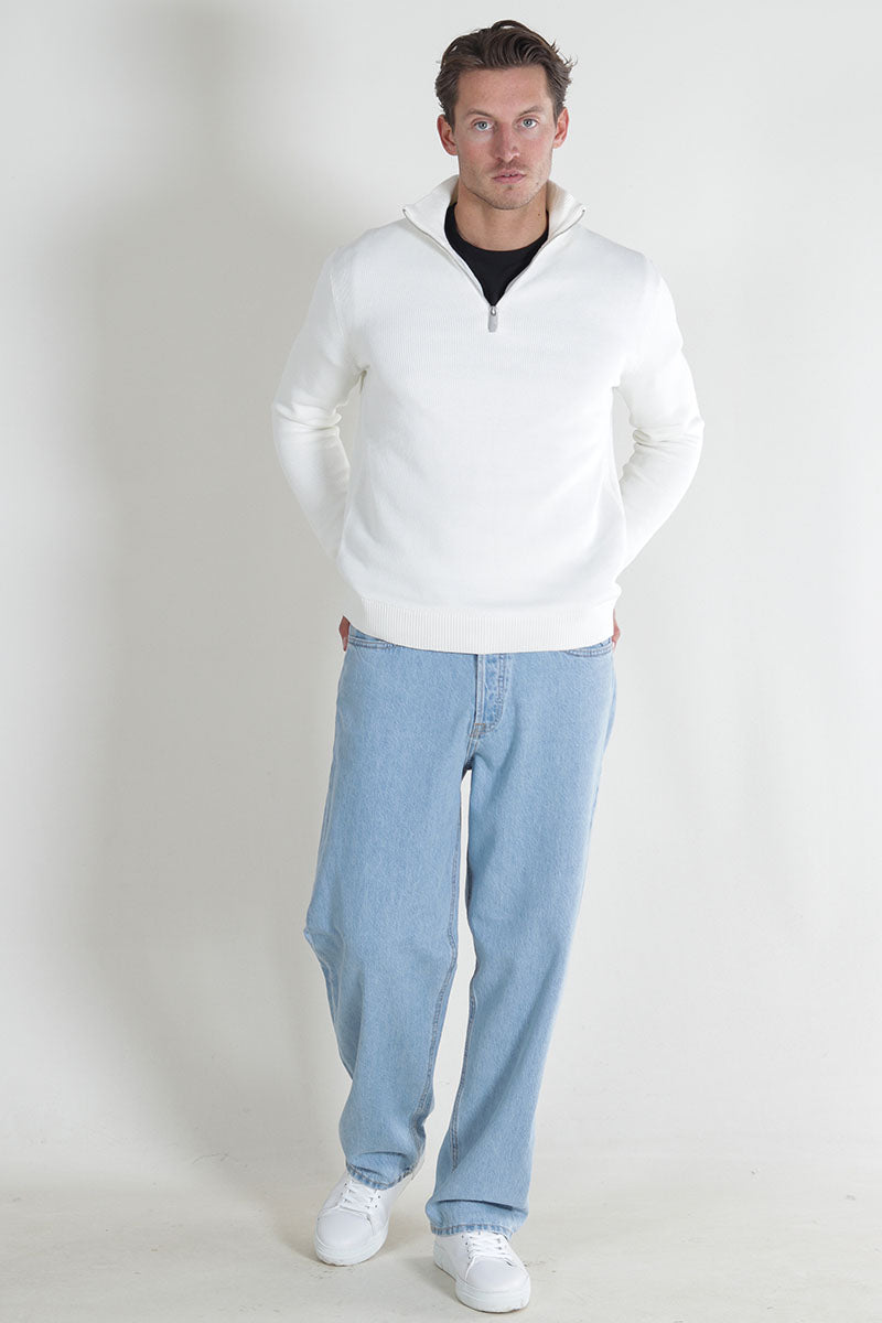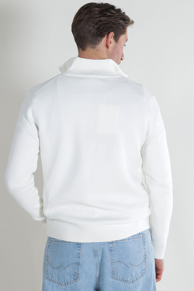 Dane LS Structure Knit Half Zip Bright White
