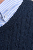 - Ciemnoniebieski sweter z długim rękawem w kroju regular fit