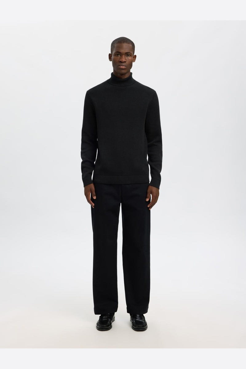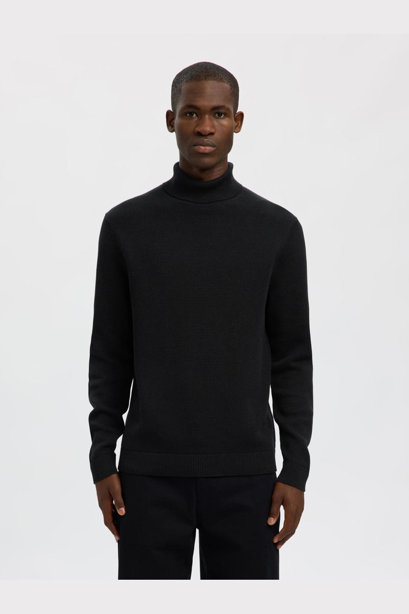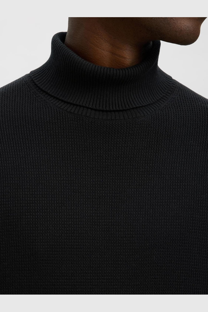 Dane LS Structure Knit Roll Neck Black
