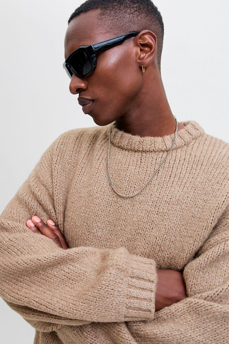 Prosty wygląd jest klasyczny, ale jeśli wolisz się nieco wyróżnić, możesz zdecydować się na wzorzysty sweter zamiast jednokolorowego. Chociaż jednokolorowy sweter jest dostępny w różnych dzianinowych wzorach, często nie wyróżnia się zbytnio, ponieważ można go teraz znaleźć w większości szaf. W 2trendy możesz wybierać spośród swetrów z klasycznym skandynawskim wzorem, który przeniesie Cię do czasów après-ski w szwedzkich lub norweskich górach, lub możesz wybrać nieco bardziej dyskretne z cętkowanym wzorem lub paskami. Jeśli zdecydujesz się na wzorzysty sweter, dobrym pomysłem może być utrzymanie reszty zestawu w stonowanych i subtelnych kolorach, aby całość nie rzucała się zbytnio w oczy. Na przykład można go ładnie kontrastować z parą czarnych dżinsów i obuwiem lub dyskretnymi sneakersami.