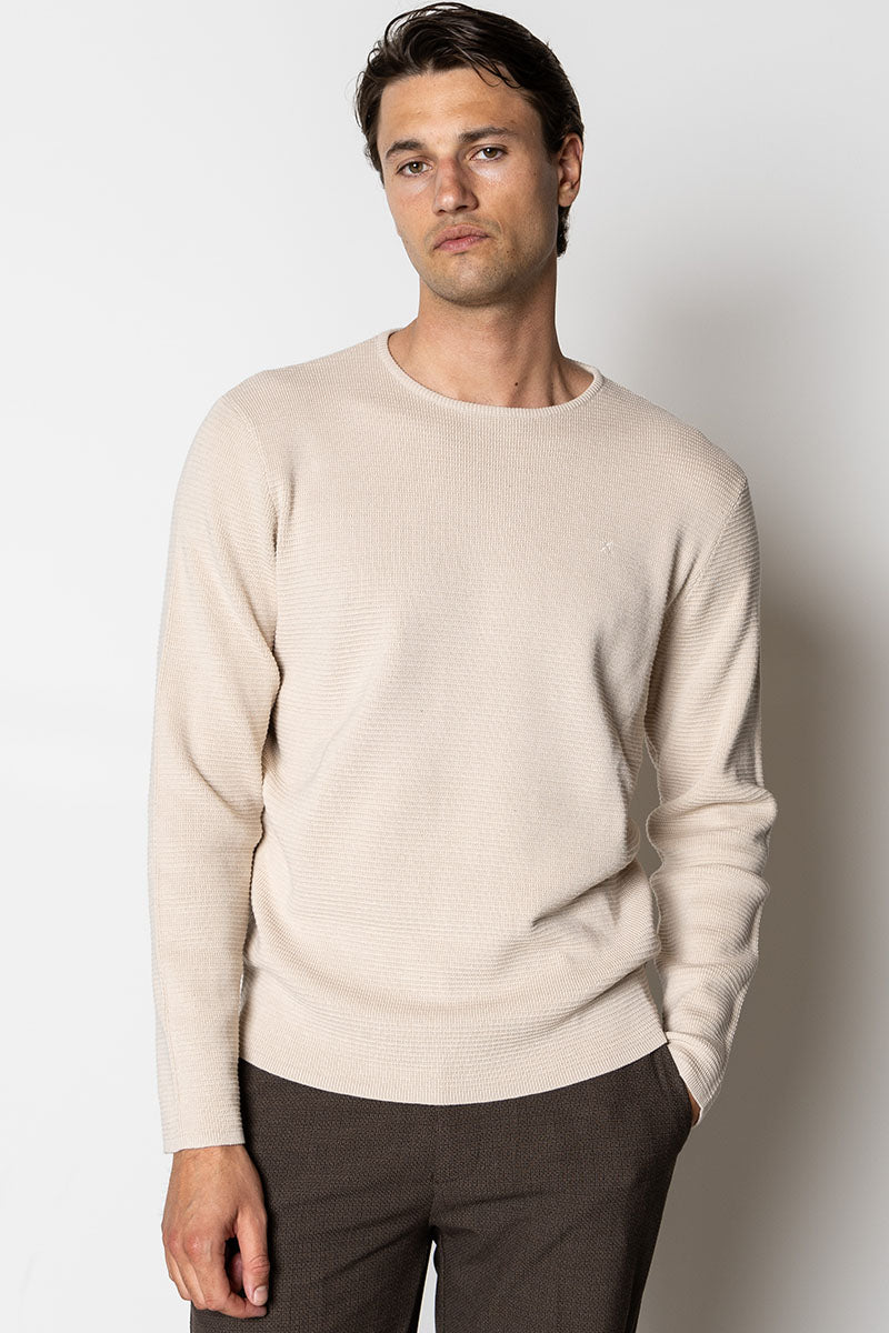 Dzianinowy sweter jest bardzo wszechstronny i może być używany przez cały rok. Nie jest zbyt gruby na letnie wieczory, a jednocześnie może z łatwością służyć jako wierzchnia warstwa zimą, gdy potrzebujesz więcej ciepła. Sweter może być bardzo praktyczny założony na t-shirt, co w połączeniu z parą dżinsów nadaje mu bardzo swobodny wygląd. Może być również częścią bardziej formalnego zestawu z koszulą pod spodem - wtedy sweter naprawdę zyskuje, a kołnierzyk i rękawy koszuli dodają mu charakteru. W połączeniu z parą spodni chino i mokasynami, styl nabiera kompletnego charakteru i może być noszony na spotkanie biznesowe lub spotkanie rodzinne. Możesz nadal zachować swobodny wygląd z koszulą pod spodem, dodając na przykład skórzaną kurtkę i parę dżinsów z przetarciami.