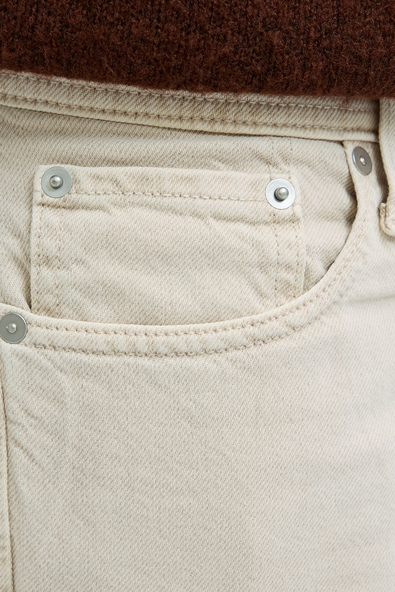 - Posiadają zapięcie na guzik, wysoki stan i 5 kieszeni
