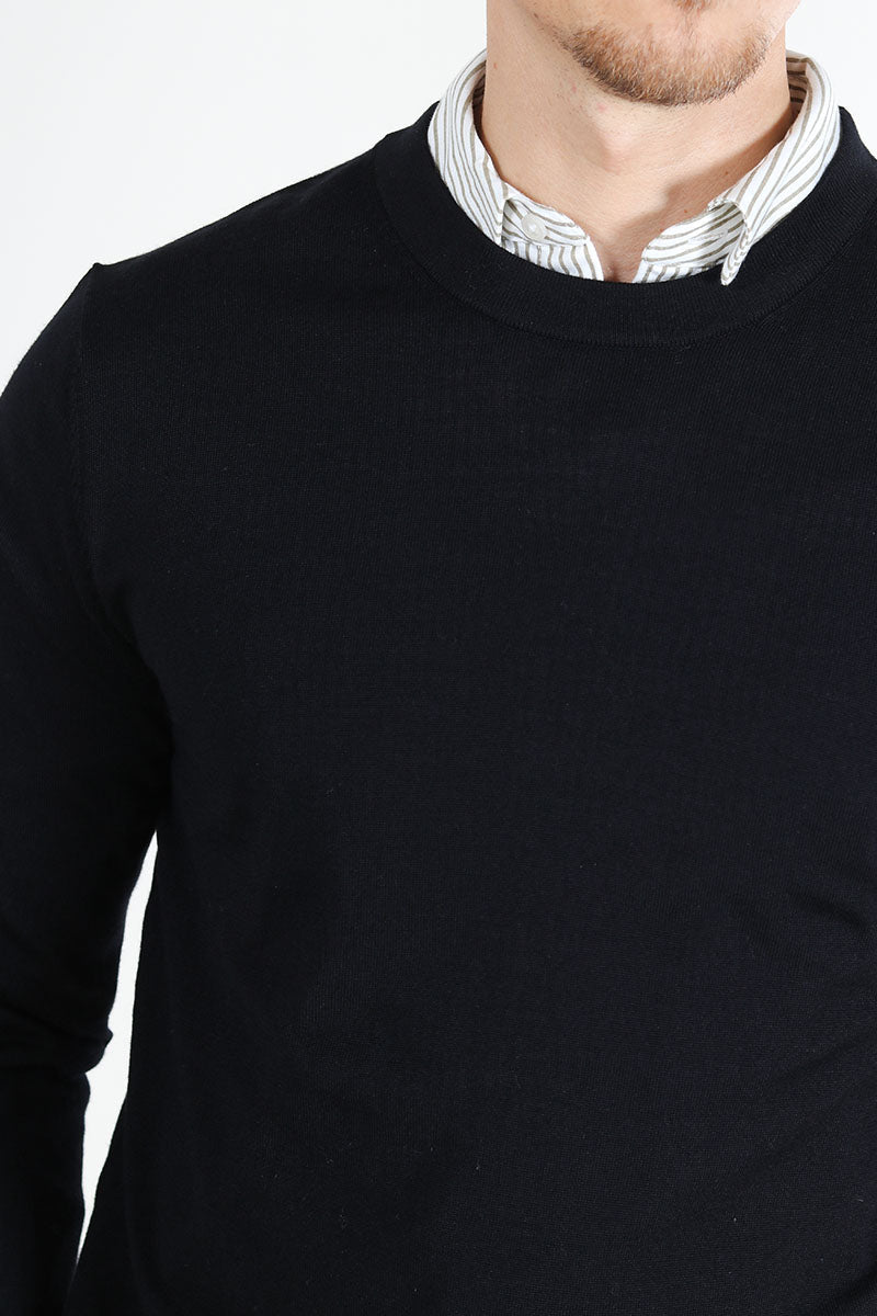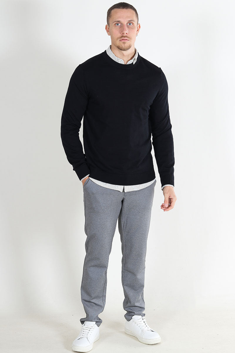 Tray LS Merino Knit Crew Neck Black