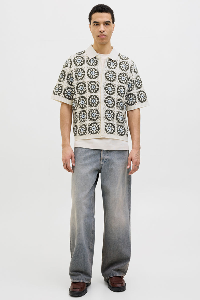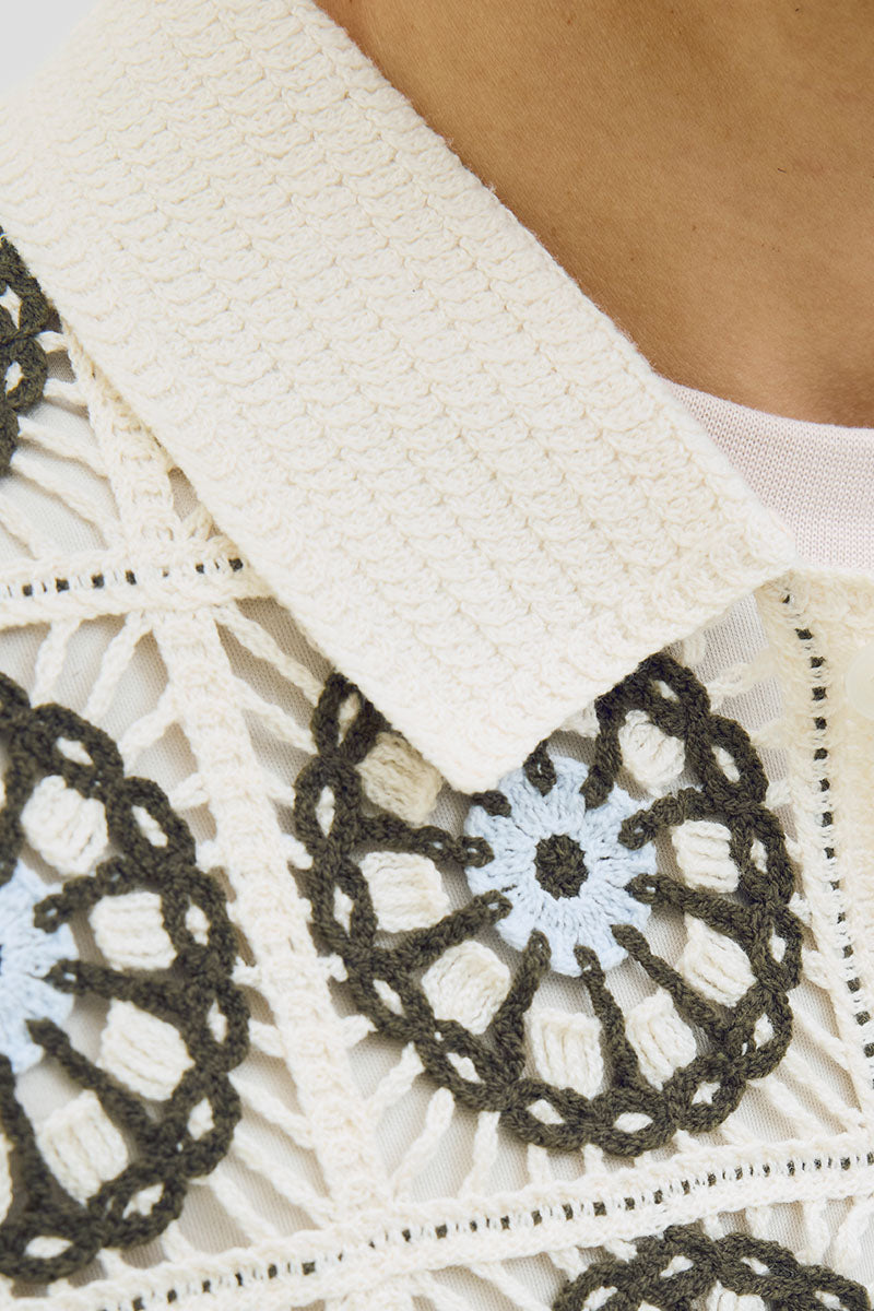 Cartagena Crochet Knit Polo Sea Salt