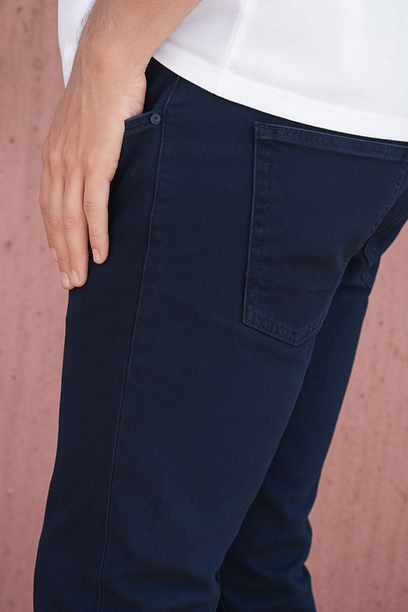 - Jednokolorowe dżinsy o kroju slim fit