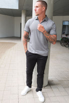 - Szara koszulka polo z krótkim rękawem