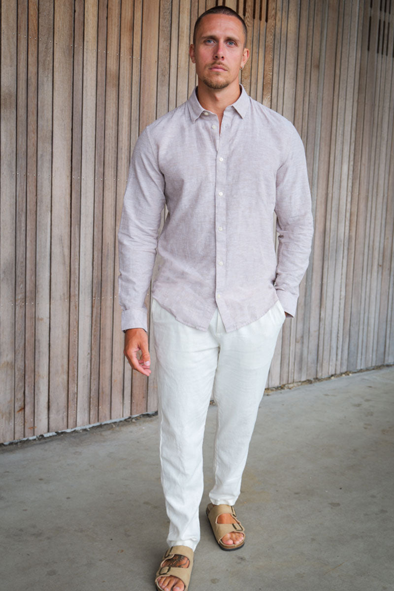 Caiden LS Linen Shirt Chinchilla