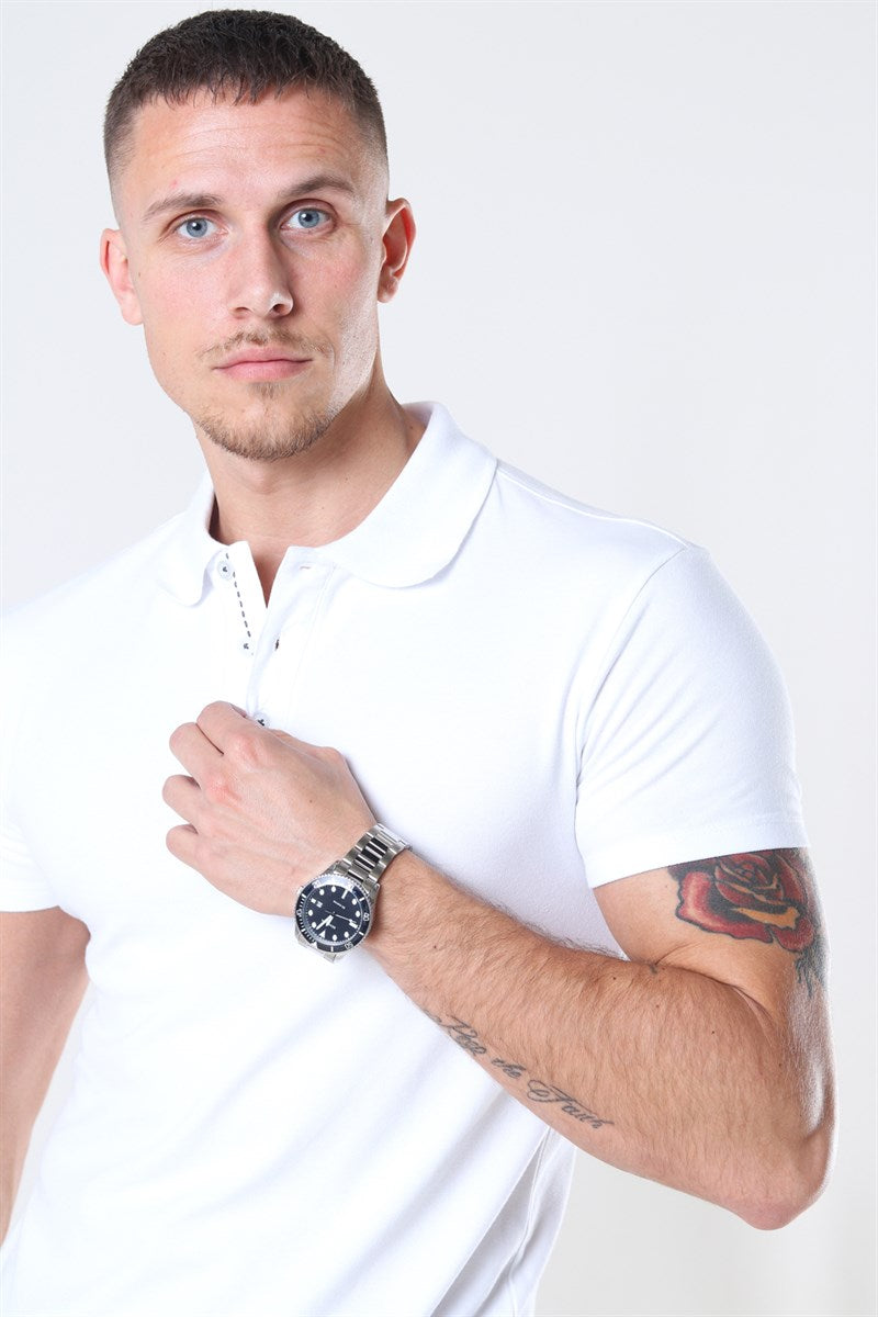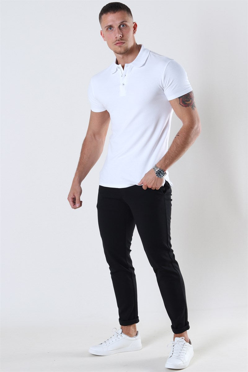 Muscle Fit Stretch Polo SS White