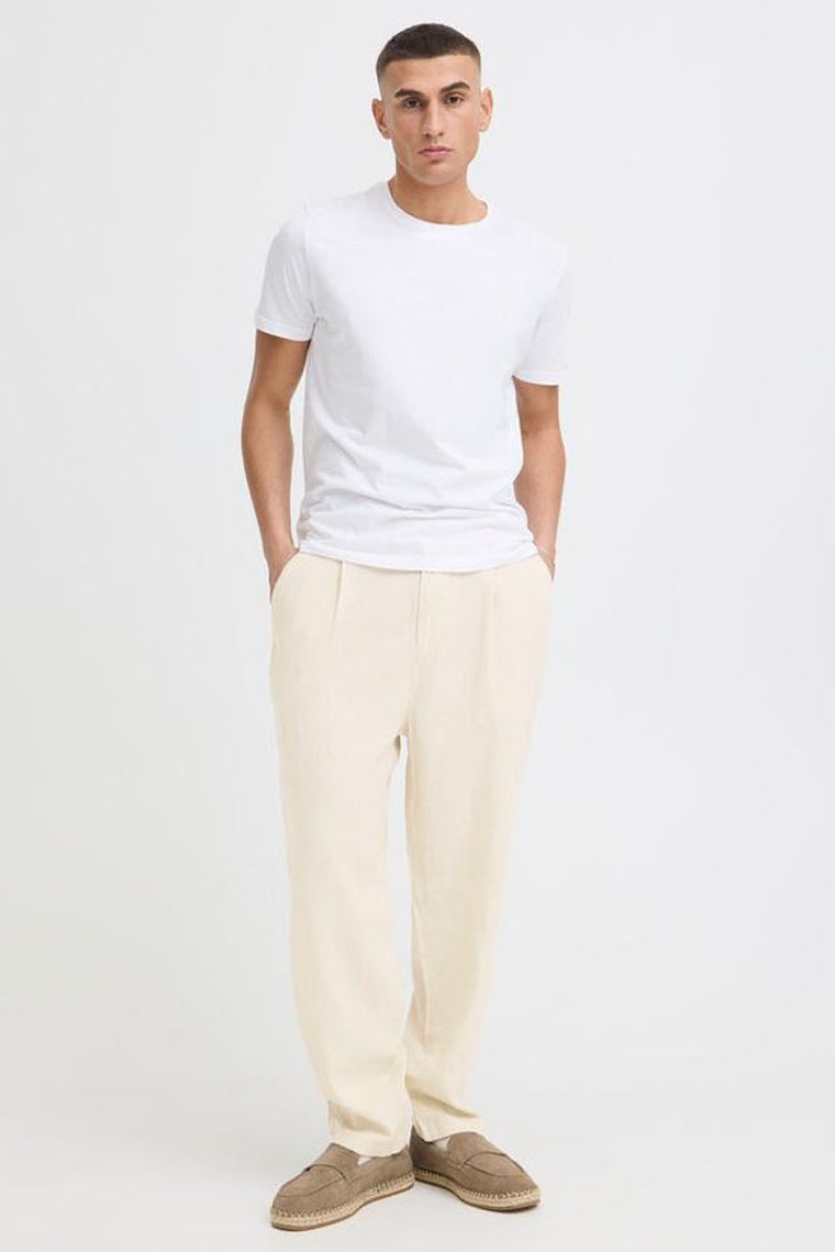 Spodnie o zwężanym kroju z zaszewkami wykonane z wysokiej jakości lnu, który doskonale łączy się z wiskozą, zapewniając wygodę i przewiewność. Model w naturalnym odcieniu płatków owsianych (Oatmeal) charakteryzuje się uniwersalnym i ponadczasowym stylem, idealnym na sezon NOOS dla mężczyzn. Produkowane w Bangladeszu, reprezentują klasę i prostotę w codziennej garderobie.