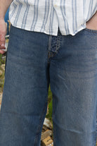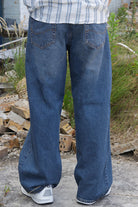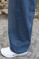• Ciemnoniebieskie jeansy w kroju wide fit