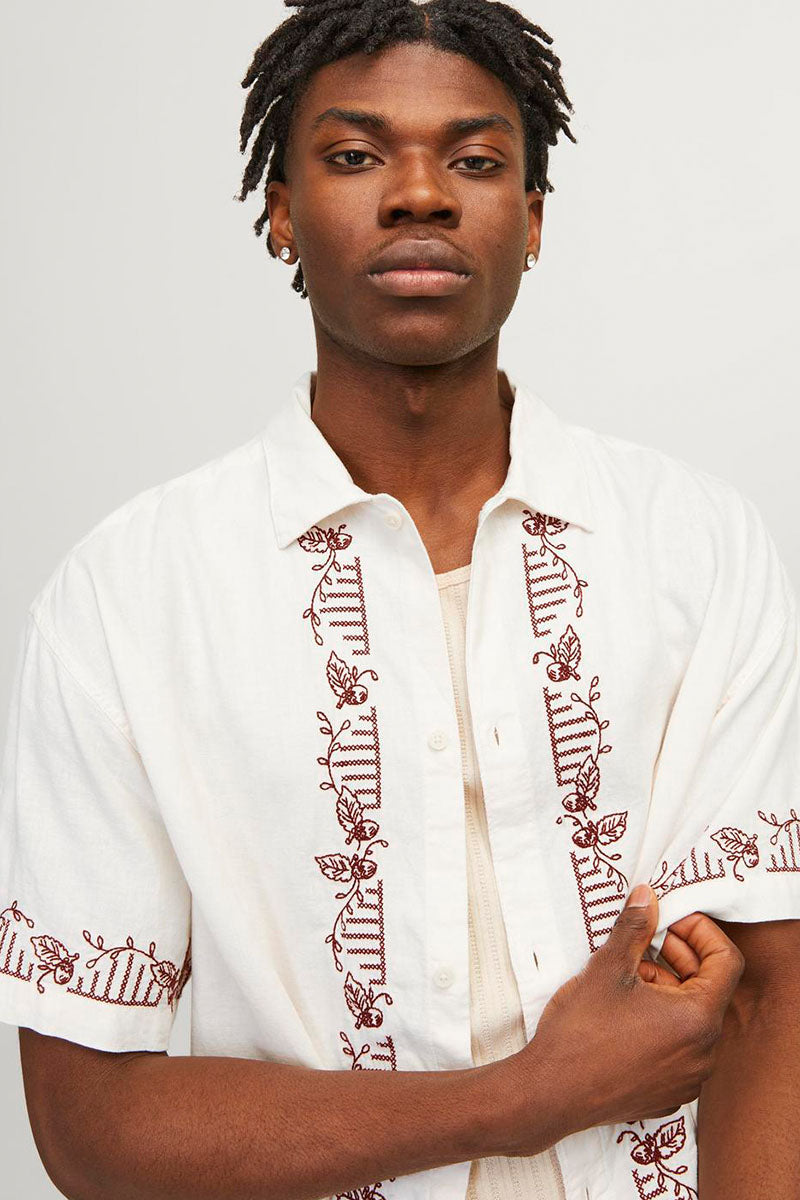 Milos Linen EMB Shirt SS Sea Salt